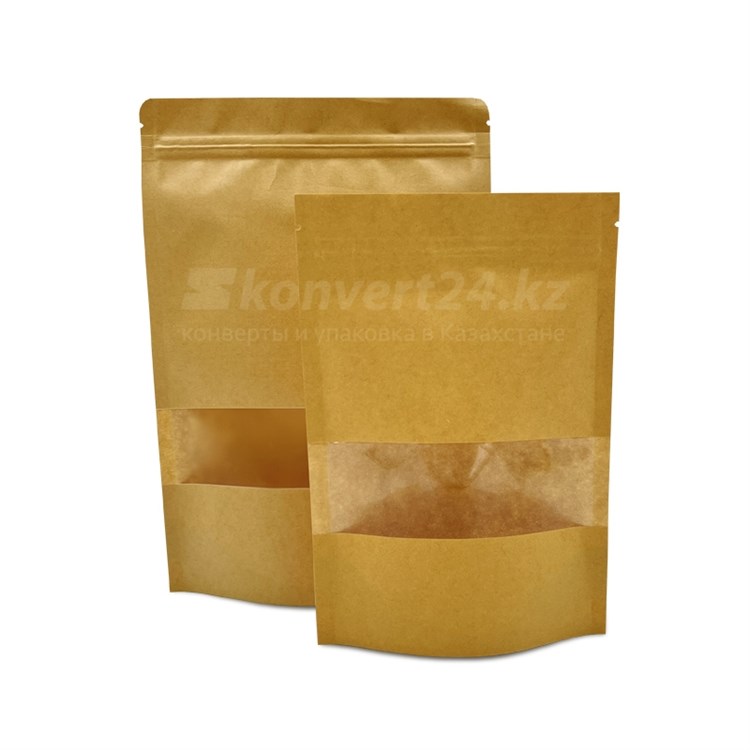 Бумажный крафт пакет дой-пак 150*220 мм примерно на 150-200 грамм чая имеет прозрачное окно 40 мм из полипропилена. Отлично подходит для упаковки чая, кофе, специй, т.к. для сохранения вкуса и аромата имеет герметичную застежку зип-лок. Пакеты дой-пак из крафт-бумаги можно использовать и для фасовки других пищевых продуктов: орехов, сухофруктов, спортивного и детского питания, снеков, а так же непищевых товаров. Дой пакеты оптом - цена ниже. Используйте скидки до 7% по картам постоянного покупателя. Отправляем в любую точку Казахстана транспортными компаниями, курьером, в пункты самовывоза или Почтой РК.